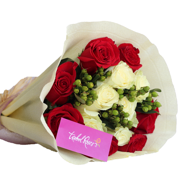Si eres de esas personas que tienen gustos clásicos y les gusta sorprender con romanticismo, este ramo es ideal para esa ocasión especial. Contiene rosas rojas, rosas blancas e hypericum. ¡Sorprende con flores a domicilio!